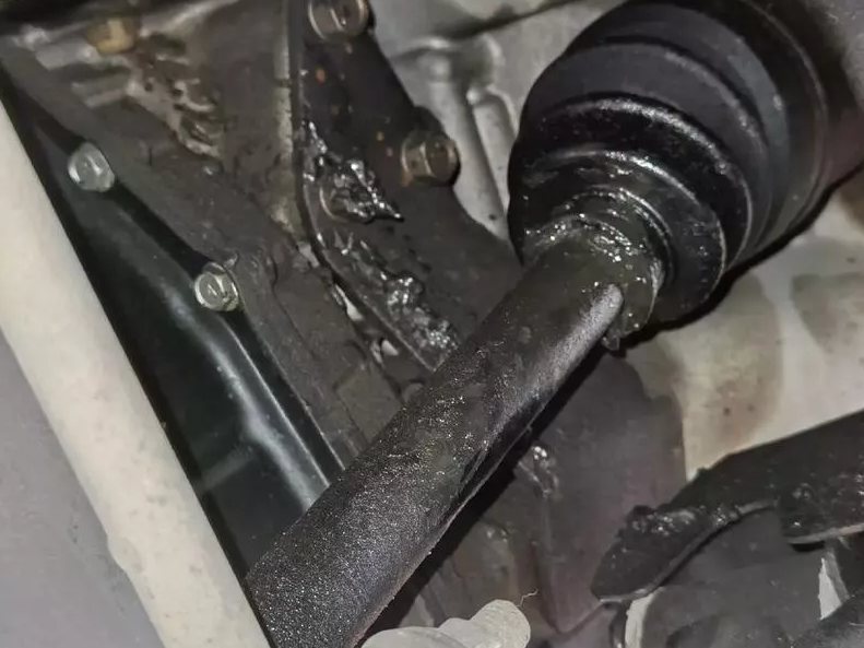 La grasa visible cerca de los neumáticos o el tren de rodaje es un signo revelador de que el arranque de la junta CV se puede desgarrar, lo que permite que la grasa escape y los contaminantes entren, lo que conduce a una rápida falla de la articulación.